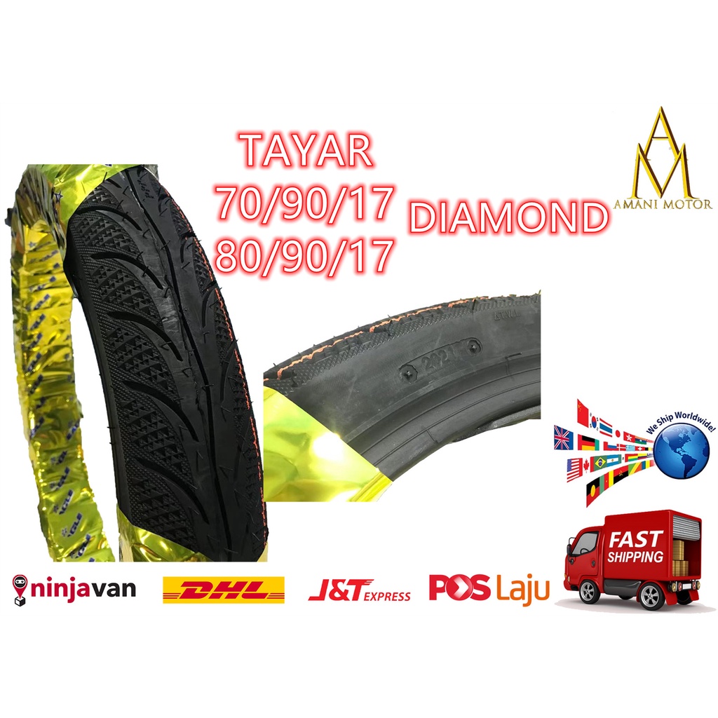 Promotion Tayar Paling Murah 70 90 17 80 90 17 Tayar Motor Tubeless Bunga Diamond Tajam Tt Saiz 17 Motorcycle Tyre Lazada