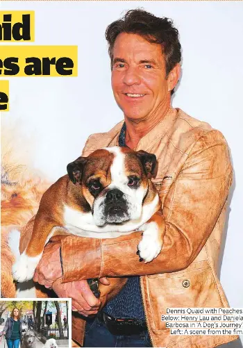 Dennis Quaid 65 Attends A Dog S Journey Premiere With His Pet Bulldog Peaches Daily Mail Online